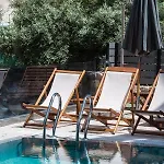 Gästerna kan ta ett dopp i en utomhusbassäng.